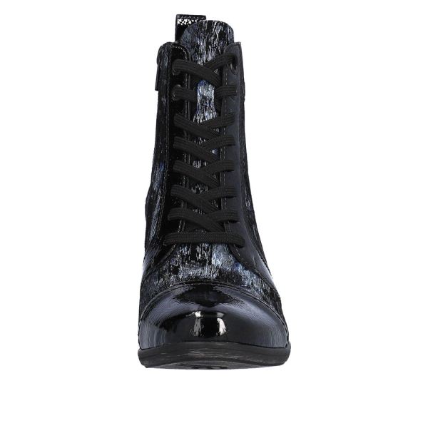 Stylish and extremely comfortable! These steel blue ankle boots made of suede leather are a must-have in any shoe wardrobe this season. The clever combination of lacing and zipper makes it easy to put on and take off the shoe. The blue and black marble pattern is a nice detail. The exchangeable footbed meets a cushioning and flexible profile sole that ensures the best grip even on slippery surfaces. Thanks to the remonteTEX technology, the shoe is water-repellent and offers protection from the wind. Grab it, girls!