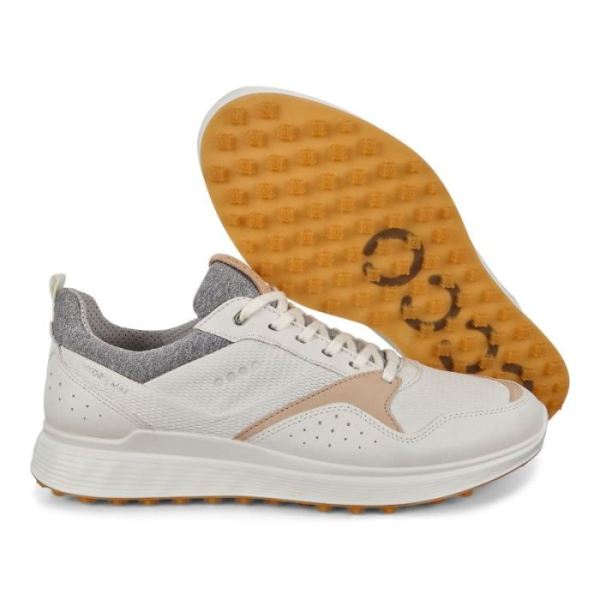 ECCO SHOES -MEN'S SPIKELESS S-CASUAL GOLF SHOES-WHITE/OAK