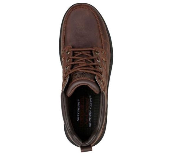 Rugged good looks and long lasting comfort combine in the SKECHERS Relaxed Fit®: Holdren - Lender boot. Smooth leather upper in a lace up ankle height comfort casual boot with stitching and overlay accents. Extreme Cushion midsole, Memory Foam insole.