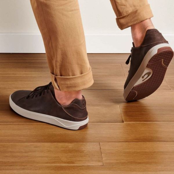 Olukai Men's Lae'ahi Li 'Ili Leather Sneakers - Dark Wood