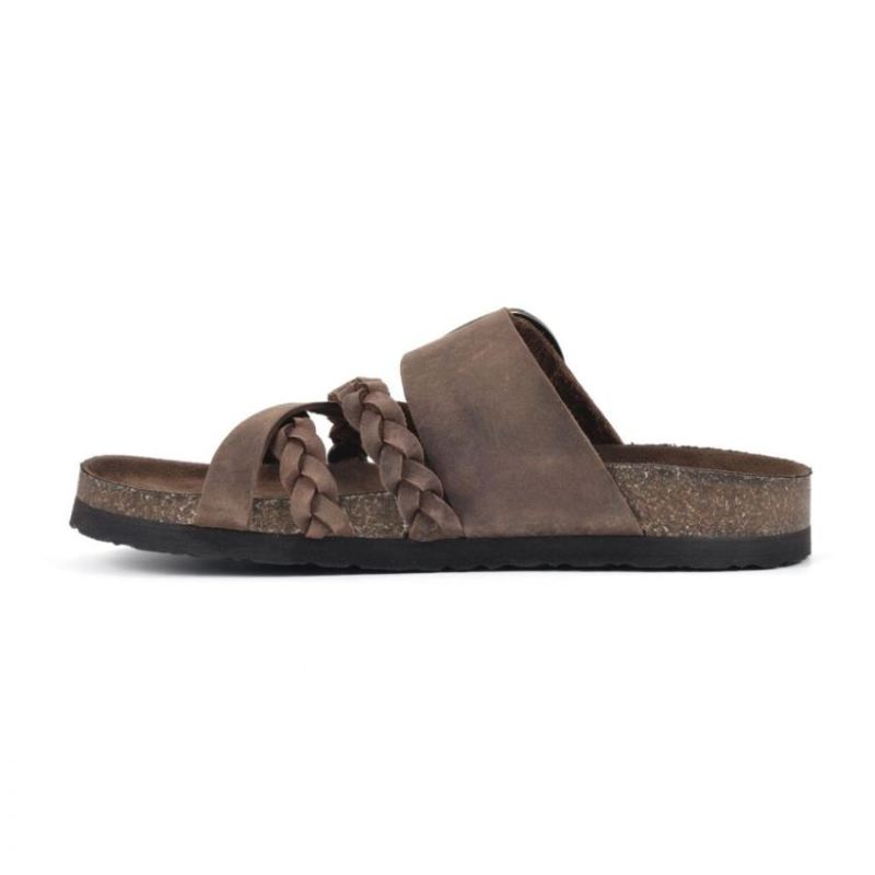 Slip on and go in the Healing Footbed sandal by White Mountain Shoes. Asymmetrical straps make a statement thanks to the intricate braiding and over-sized, working buckle. With the dramatic design of the leather straps and the molded footbed bottom we're known for, the Healing is the perfect warm-weather slide sandal.