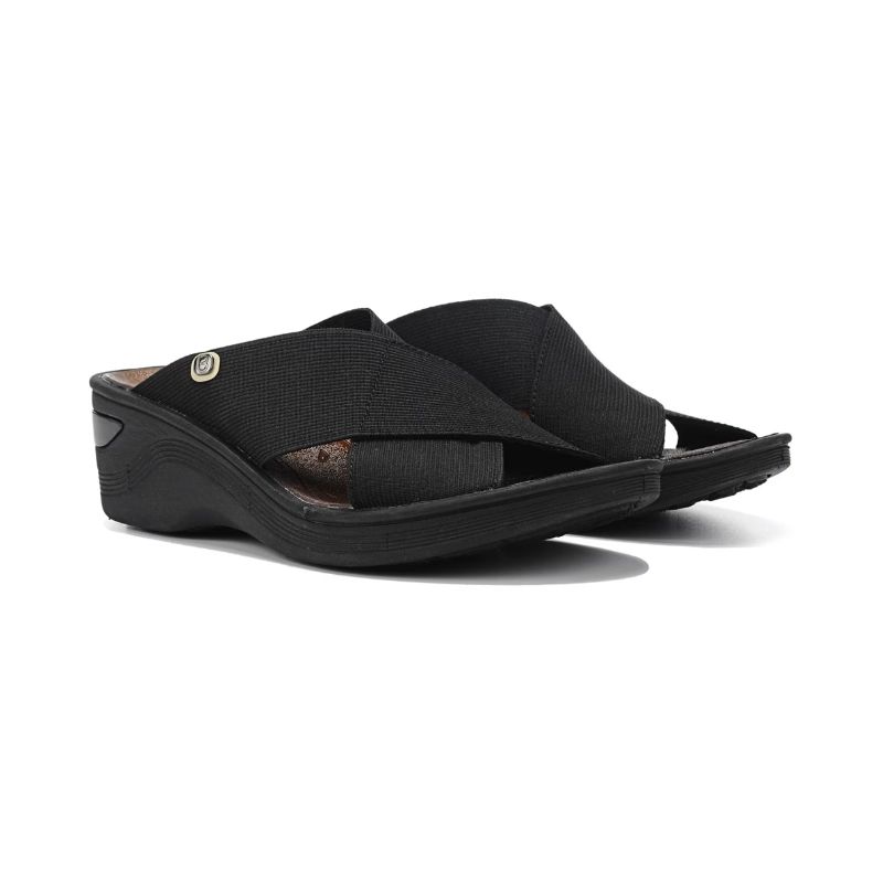 Bzees Women's Roma Sandal Wedge-Black Fabric | New Arrivals