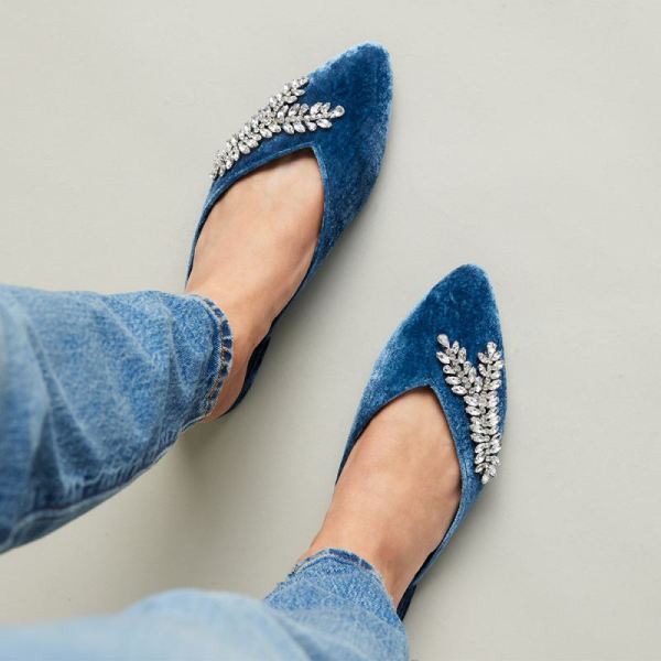 Birdies | The Swan-Jeweled Blue Velvet Women Slide-Jeweled Ocean