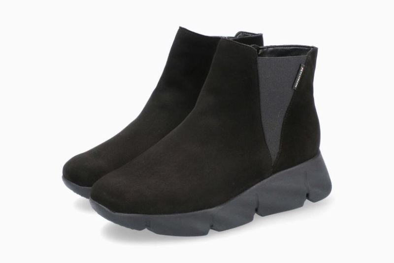 MEPHISTO HAZELINA | Women Ankle Boots Black Leather Velvet. Chelsea boot with a fashionable, ultra-lightweight look, defined by a finely tailored cut. The detachable insole with integrated SOFT-AIR Technology reduces impact to a minimum, for a gentle, effortless walk.