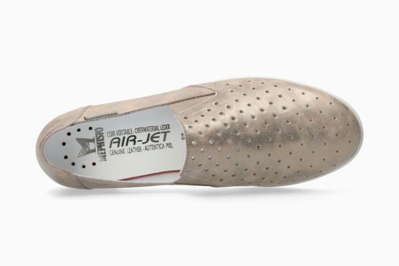 MEPHISTO KORIE PERF | Women Shoes Brown Leather Metallic Glittered. A very comfortable slip-on, decorated with perforations at the front. The detachable insole, with integrated SOFT-AIR Technology, helps to absorb impact from walking. This leather-lined slip-on is perfect to complete your look.