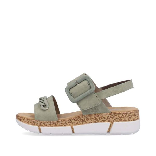 Favorite shoe potential! These mint green strap sandals made of imitation leather by Rieker impress with real comfort for the feet. Wide straps, a buckle and a narrow heel strap allow for an uncomplicated entry and ensure the perfect fit. The shock absorbing and light sole with wedge heel additionally pampers the feet with every step. In addition, the cover sole is extra soft. Furthermore, the narrow E 1/2 fit provides extra support. Simply top!