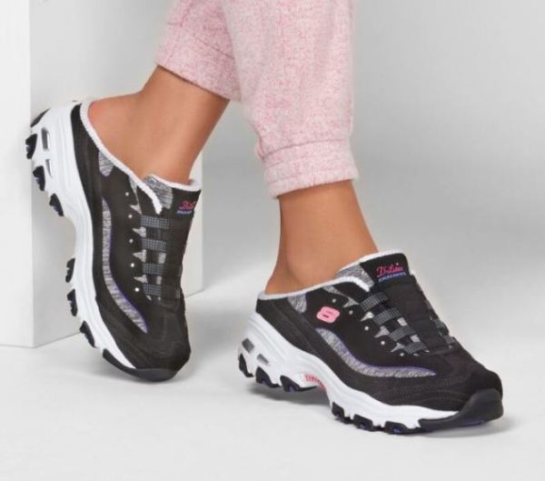An easy-wearing favorite gets added sparkling style in the SKECHERS D'Lites - Comfy Cloud shoe. Smooth leather and iridescent metallic finish fabric upper in a low backed slip on sporty casual sneaker clog with stitching and overlay accents. Air Cooled Memory Foam insole.