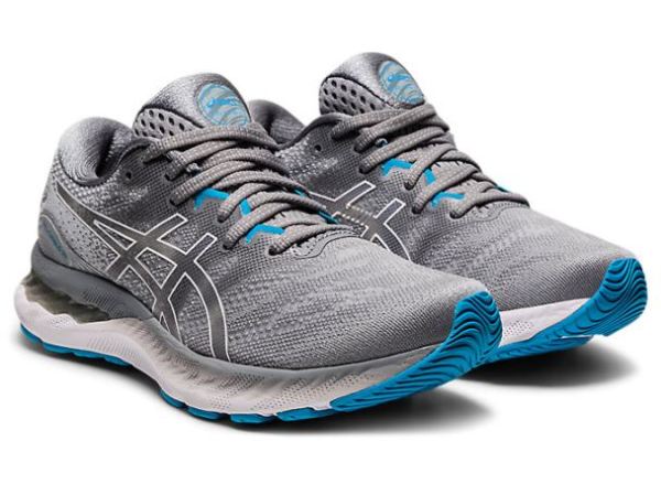 The GEL-NIMBUS 23 running shoe continues to offer excellent comfort and long-run impact absorption. Its improved stability provides a more balanced stride that's followed by smoother transitions. Constructed with comfort and breathability in mind, the upper features a softer engineered mesh design for long runs. Engineered eyelet shaping helps the upper move more naturally with the foot, while a stretchy midfoot panel appropriately hugs the foot to generate better flexibility. Additionally, the shoe's upper is made with recycled materials to reduce waste and carbon emissions. Providing the runner with excellent shock absorption and softness, the GEL-NIMBUS 23 delivers more compression in the heel thanks to its softer GEL technology cushioning unit and contoured design lines. Also, a gender-specific TRUSSTIC device provides an articulated amount of support in the right direction for men and women to help generate a smooth transition. Under the toe, the inclusion of gender-specific pillars help cushion the body and help runners experience a softer feel. Simultaneously, the OrthoLite X-55 sockliner equips runners with a forgiving, yet responsive stride. The components of the GEL-NIMBUS 23 shoe help increase the softness without forgoing the integrity of the shoe's ride. Our 23rd version of the GEL-NIMBUS continues to make advancements within the lineage by offering improved support and comfort for distance runners.